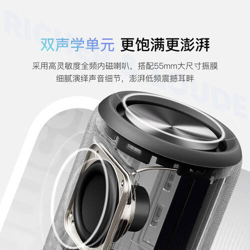 此外,它还具备10小时超长续航,确保你在外出时无需担心电量问题。内置的高灵敏度内磁喇叭,配合大尺寸振膜,重新定义了小音箱的音质体验,带来震撼的低音效果。