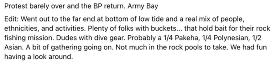 在Facebook上,“保护Whangaparāoa岩池”的群组也有人发了一篇长文,详细阐述了新西兰赶海是如何在中文社交平台上被宣传的。