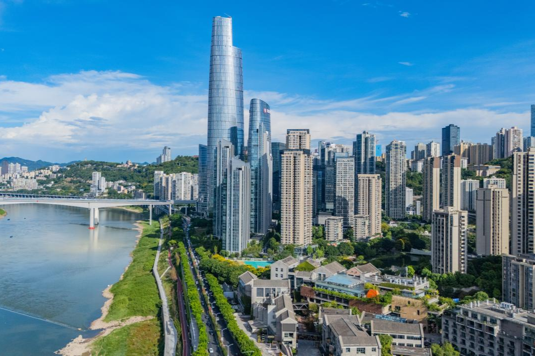 据悉,该项目创下了重庆市三项“首个”纪录:绿色建筑新规后首个超高层三星绿色公建、首个200米以上全钢结构超高层、首个国际净碳超高层公建。这些硬核指标背后,是渝中发展现代服务业的新态度:不要“笨重”的扩张,要“轻盈”且“绿色”的集约。