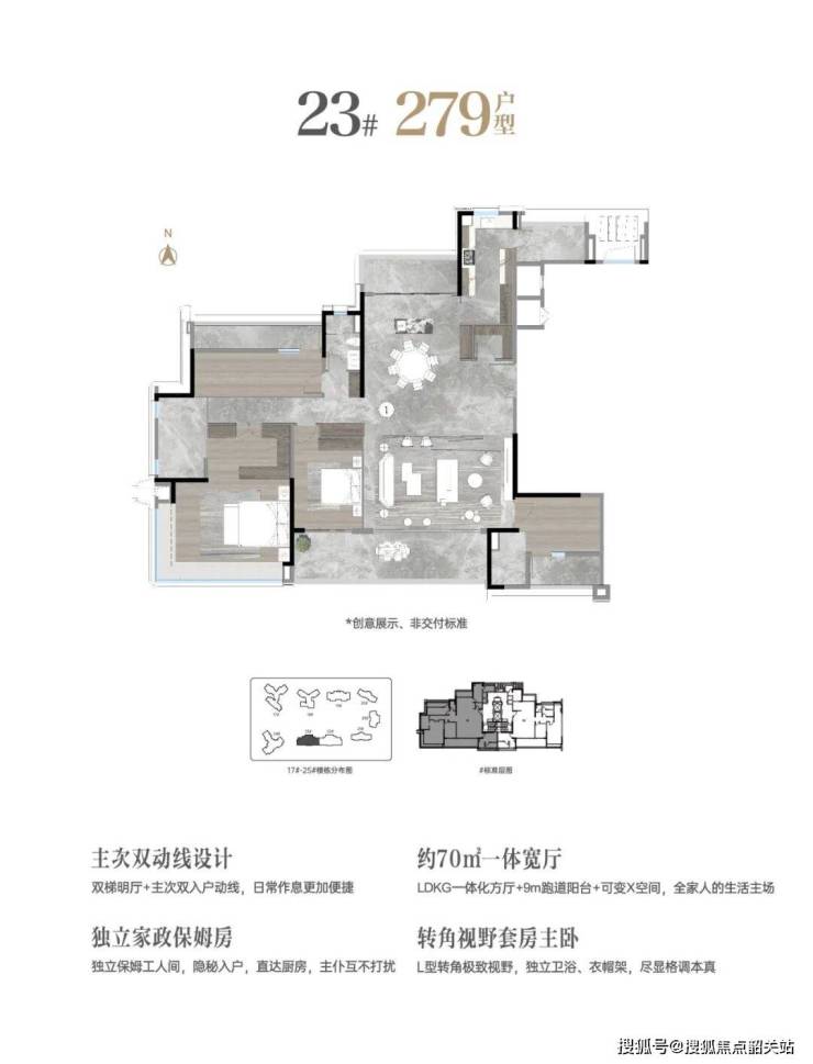 本次主推的196-279㎡新派科技大宅,是对“空间与智能”的重新定义。以建面约220㎡户型为例,采用了“LDK+洄游动线米,连通超大方厅与景观阳台。全屋植入了华为鸿蒙全屋智能系统,实现灯光、窗帘、空调、安防的语音与APP控制。双主卧套房设计,主卧配备独立衣帽间、双台盆卫浴及全景浴缸。所有户型均做到了100%南向采光,且专梯专户,电梯厅可作为私家前室使用。