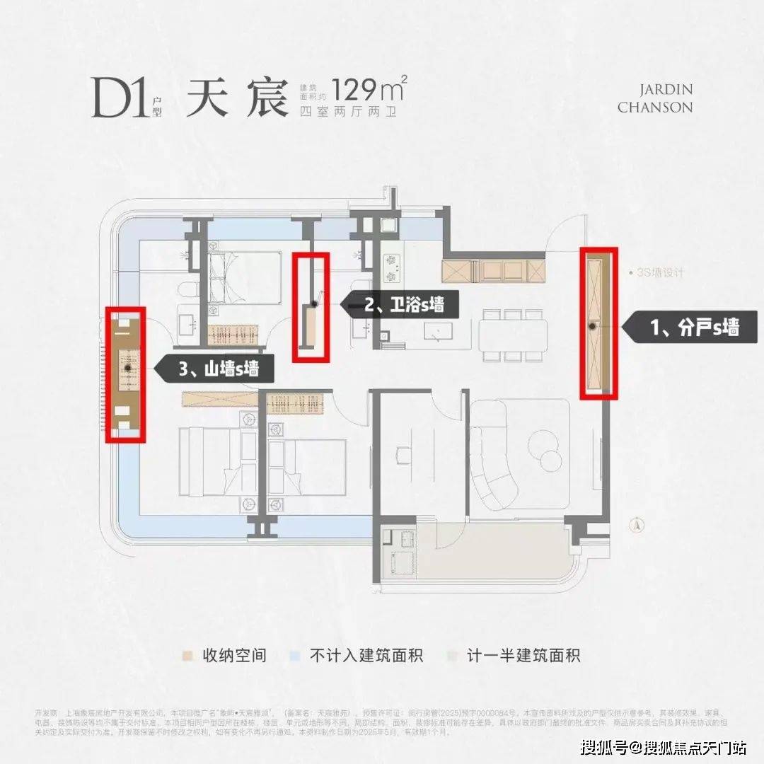 直到象屿天宸雅颂的出现,终于出现兼容。以129㎡户型为例,分户s墙、卫浴s墙、山墙s墙,三s墙的设计,完美解决玄关、厨房冰箱的摆放空间问题!