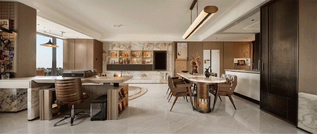 ·前沿中横厅设计,0走廊、0浪费的将碎片空间膨胀为家庭核心场景,在LDKB的基础上更加注重空间利用,小家也能拥有大空间尺度!