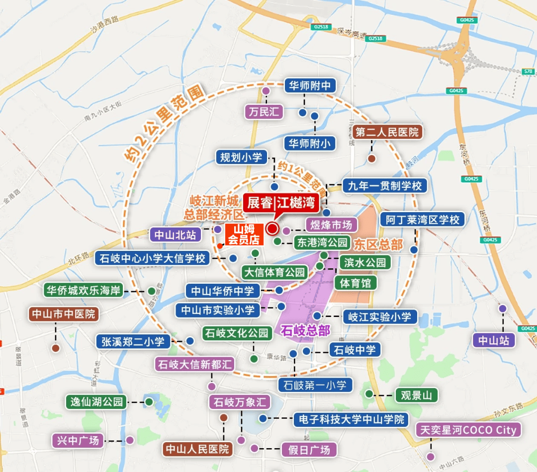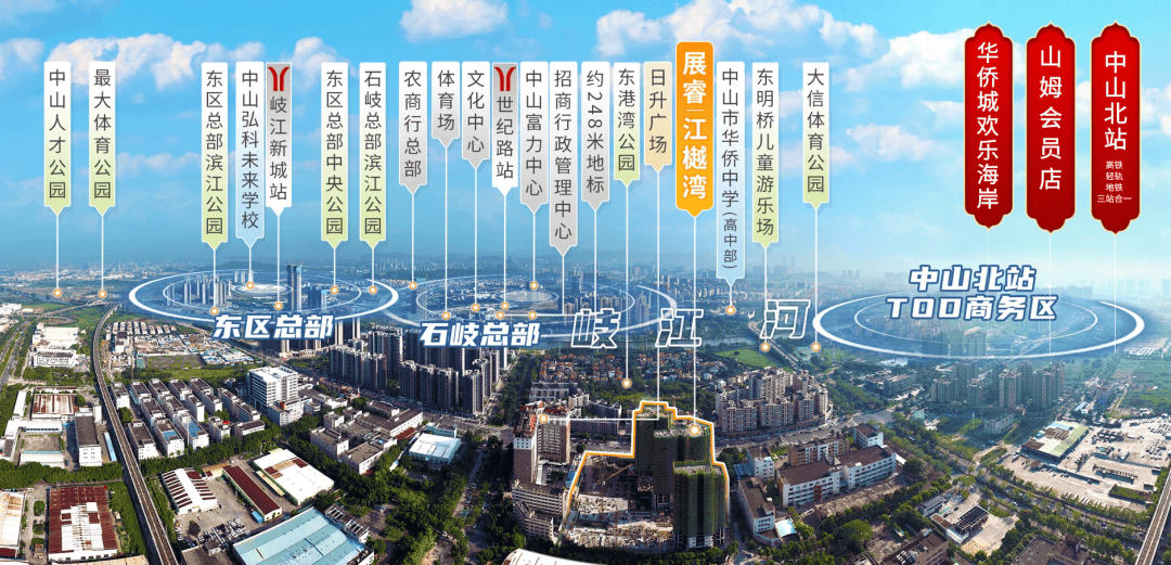 江樾湾傲踞岐江新城双总部核芯,享千亿配套兑现红利。距中山欢乐海岸主题乐园约1500米,约500米达石岐区行政服务中心,距山姆会员店约1000米,3公里内行政配套环伺。