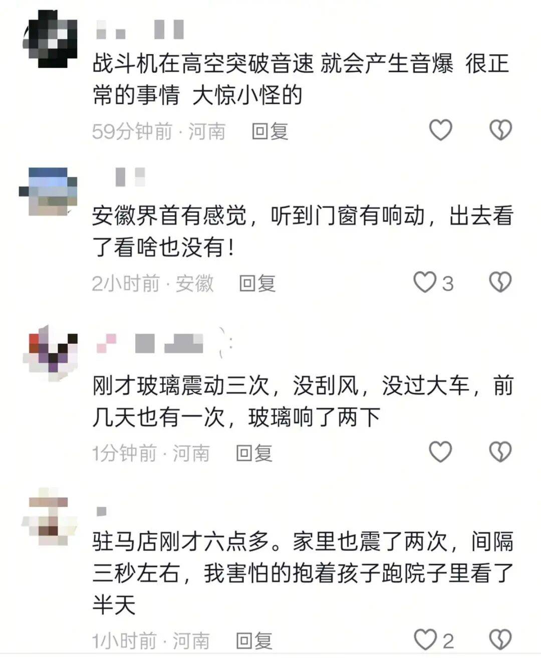 同样的情况还发生在周口的周边城市,有河南驻马店、安徽阜阳的网友也留言道,晚上听到了异响。