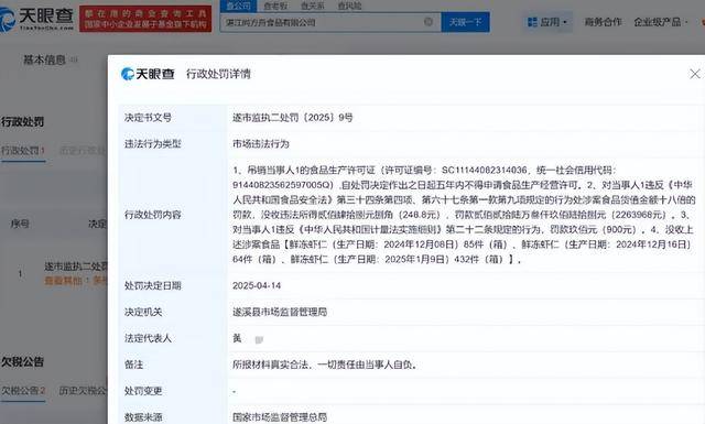 更夸张的是,这家企业花了1800万元请明星代言,却连基本卫生都懒得维护,更讽刺的是,这种事情不是第一次发生,2024年315曝光过湛江“注水虾仁”,企业被罚款、吊销执照,还有五年行业禁入。