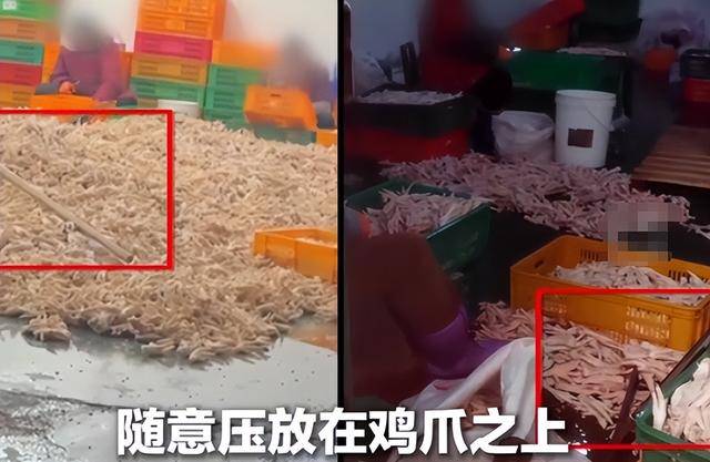 重庆那家“乖媳妇”鸡爪厂的画面,看完让人很难再安心吃零食,记者暗访时看到,车间地面满是污水,有的地方甚至能没过脚踝,工人直接赤脚在里面走来走去,鸡爪掉在地上也没人当回事,随手捡起来就重新扔回加工线,扫把、铁铲、鸡爪混在一起,几乎没有任何卫生隔离。