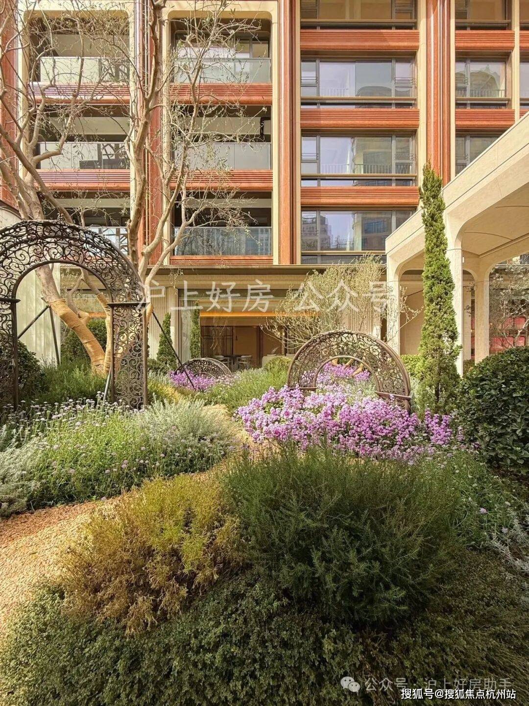 植物搭配上尽显巧思:油橄榄、铁冬青等带着南法风情的植物错落分布,各类花卉四季轮换绽放,春有繁花、夏有浓荫、秋有彩叶、冬有绿意,每一季都有不同的风景。材质选择上更是不吝成本:地面与墙面铺陈世茂金麻、贝金米黄等进口石材,业主可休憩的座位还选用稀缺的奥巴马木奢石,精选整块石材大面积通铺,纹理色泽犹如木材般自然温润;水景采用独特的波浪石材设计,水流淌过时灵动婉转,宛如自然馈赠的景致。更贴心的是社区地面的抬高设计,既有效隔绝了外界噪音与路人视线,保障居住私密性,又让景观更具层次感,置身其中则宛如繁华都市里的隐秘庄园,每一次下楼散步,都是与自然的温柔邂逅。