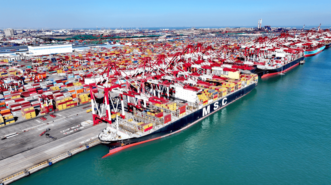 数据显示,2024年,青岛港货物吞吐量达到7.45亿吨,稳居世界第四;集装箱量3217万标箱,位列世界第五。